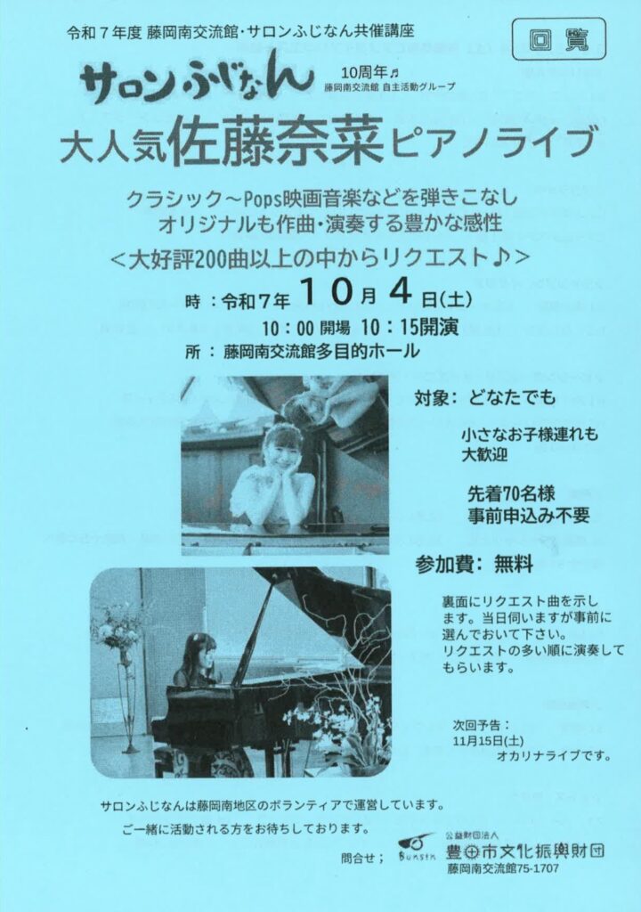 日時:10月4日10時開場、10時15分~場所:藤岡南交流館