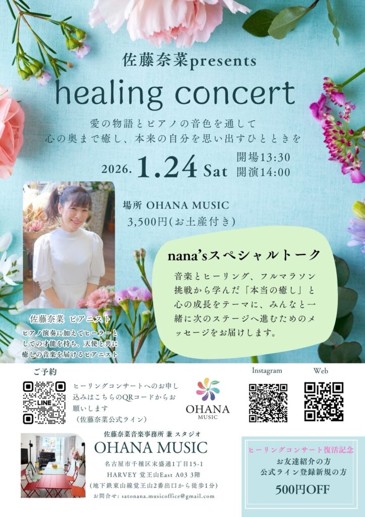 2026年1月24日(土)OHANA MUSICにて、ヒーリングコンサートを行います。
